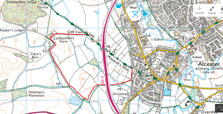 Concerning the closure of Cold Comfort Lane footbridge over the A435. This closes a key walking route into Alcester from the west and is a special issue to walkers along The Monarchs Way long distance footpath. The Monarchs Way team have published this walk around for walkers to from Alcester for the foreseeable future.
