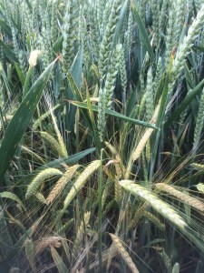 I am standing at the edge of a huge field of waist deep, impenetrable, wheat. No sign of a path and an instruction that warns me that the exit stile is low down in the far hedge and “might be hard to find”. I left the lane in plunged down through a huge patch of head-high and soaking nettles. Having run that gauntlet I have crossed two small tributaries of the River Onny and climbed a slippery slope to get to this point. The church is still before me, tantalisingly just beyond the impenetrable barrier before me. I track left. No good. I track right. Even worse. Eventually I shove my way through the soaking crop to a track formed by tractor tyres. They head roughly in the right direction. I am now soaked to the waist and covered in seeds, spiders, webs and muck.