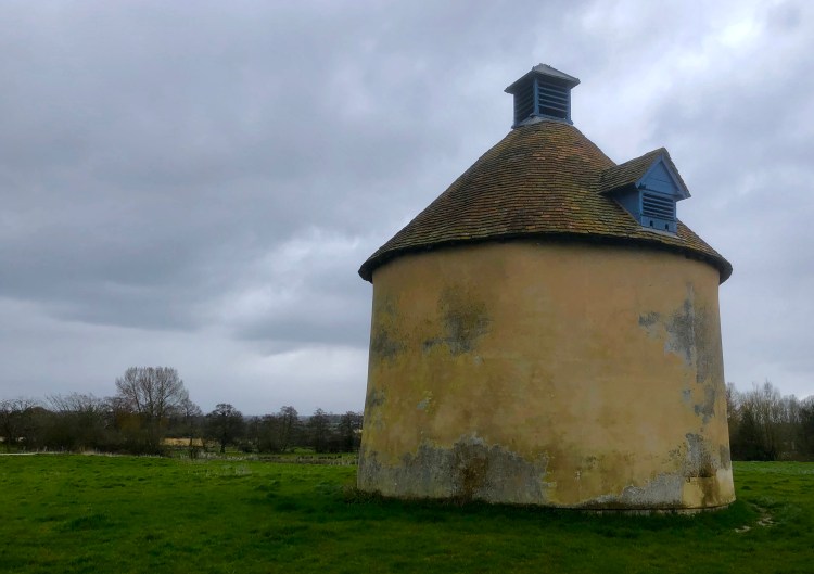 SHWF and I often lunch as part of our walks. Usually when the walking is done. Today was different. We still had some distance to go and it took some time to get the stiff legs working again as we followed the first part of our journey along the old railway line until we emerged into fields. Our path, to the left, diagonally bisected a newly-harvested field towards Kinwarton Dovecote.