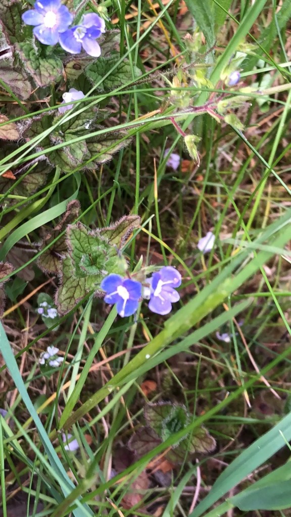 The fields are mainly used by dog walkers and I have never really taken much notice but recently as I stroll immersed in my thoughts, I begin to notice the nature around me. Fish bask in the deeper river pools. Fields of buttercup, cow parsley and nettle begin to give up more interesting species of speedwell and mallow. A copse of saplings gives up Aspen, Grey Willow and Ash among the Hawthorn and Oak. I even begin to notice the odd animal; a rabbit, a squirrel a buzzard under attack from a crow.