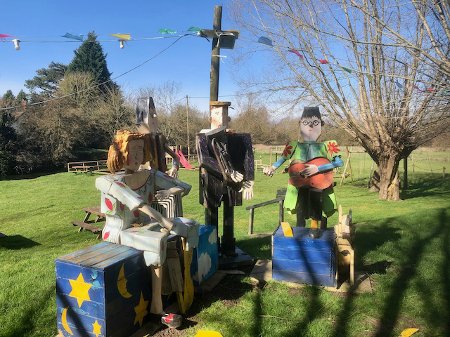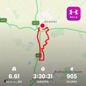 8. The path dives down the embankment. Follow to a style and into a field. You will see an avenue of trees before you. This is, again the old trackbed. Keep going to the top where the path brings you out onto Evesham Rd. Follow Evesham Rd to the run about. Then take the third exit onto Swan St. Then first left into High St. The end of your walk is nigh. Please feel free to partake of any or all of the cafes, shops and hostelries you will find in and around High St.